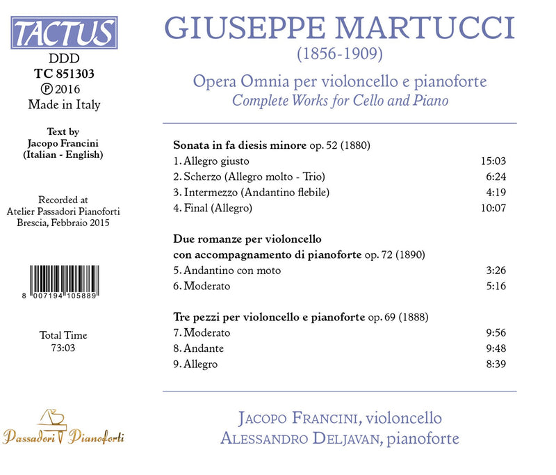 Giuseppe Martucci was admired and appreciated by his contemporaries Franz Liszt and Anton Rubinstein, and was an outstanding performer and teacher, as...