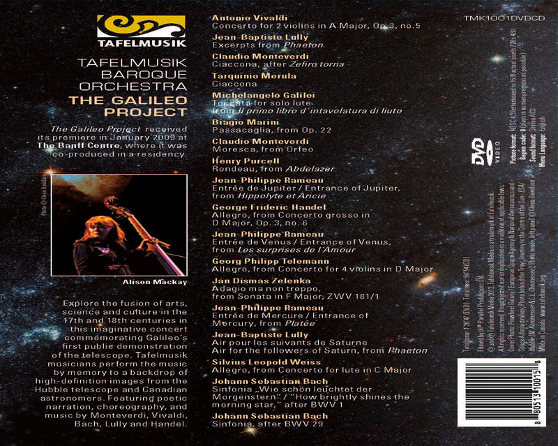 THE GALILEO PROJECT • Jeanne Lamon, dir; Tafelmusik Baroque O (period instruments) • TAFELMUSIK 1001 (DVD: 86: 47; CD: 56:54) Music of...