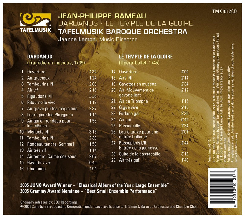 RAMEAU Dardanus: Suite. Le Temple de la gloire: Suite • Jeanne Lamon, cond; Tafelmusik Baroque O (period instruments) • TAFELMUSIK 1012 (67:12)...