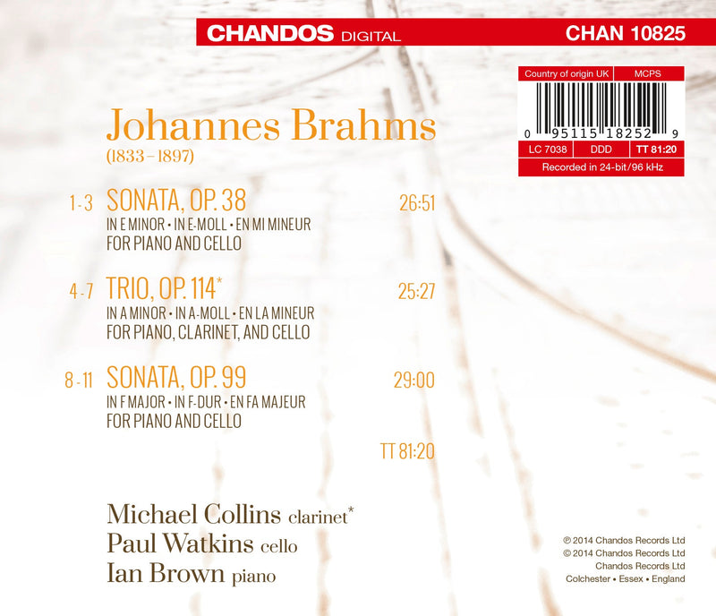 On SaleChandosBrahms: Clarinet Trio; Cello Sonatas Nos. 1 & 2 / Collins, Watkins, Brown
