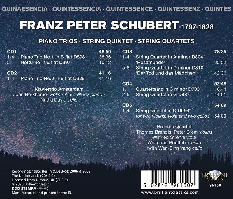 On SaleBrilliant ClassicsSchubert: Chamber Works / Brandis Quartet, Klavertrio Amsterdam
