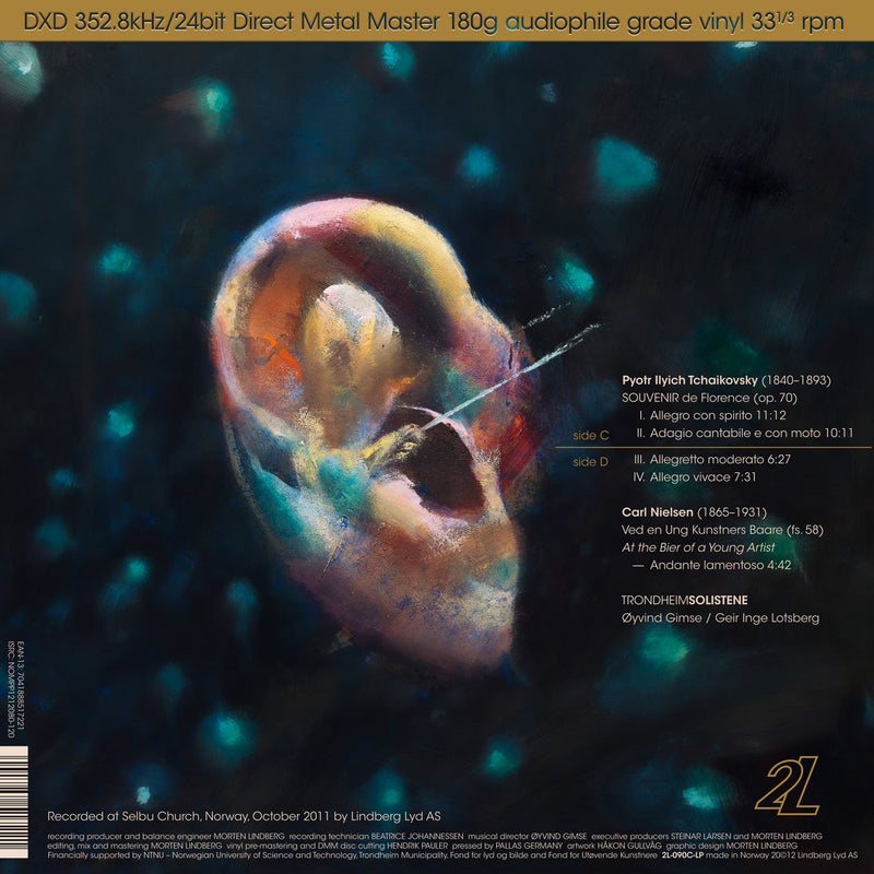 On this 180g vinyl release, artistic director +�yvind Gimse and his associate Geir Inge Lotsberg initially chose two pieces that represent, in their opinion, "the most beautiful music ever composer for the string orchestra": Tchaikovsky's Souvenir de Florence and his Serenade for Strings. Aiming for a 90 minute program, this left 30 minutes to record. TrondheimSolistene and 2L asked fans worldwide what they would like to hear. The majority voted Nielsen's Suite Opus 1, a little gem that would exploit the Trondheim Soloists' singular way with Nordic repertoire. TrondheimSolistene are regarded as one of the top chamber orchestras in the world. Their DIVERTIMENTI and FOLK STYLE were both nominated for a total of five American GRAMMY Awards in categories "Best Small Ensemble", "Best Engineered Album" and "Best Surround Sound Album".