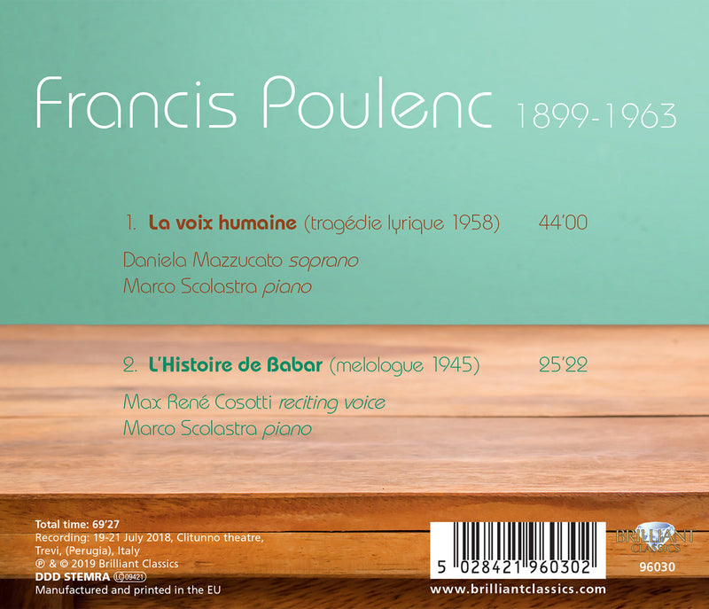 On SaleBrilliant ClassicsPoulenc: La voix humaine & L'histoire de Babar / Mazzucata, Cosotti, Scolastra