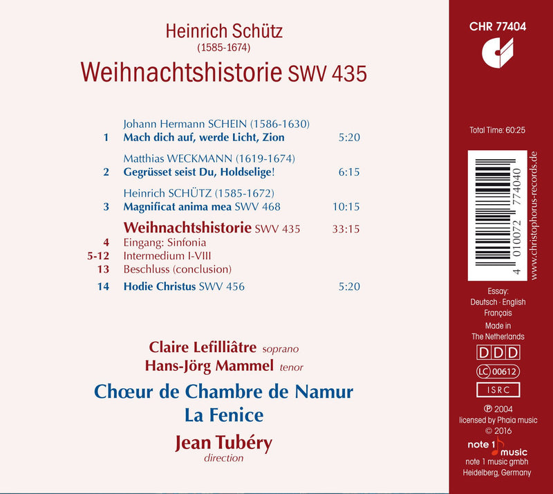 On SaleChristophorusSchutz: Die Weihnachtshistorie / Tubery, La Fenice