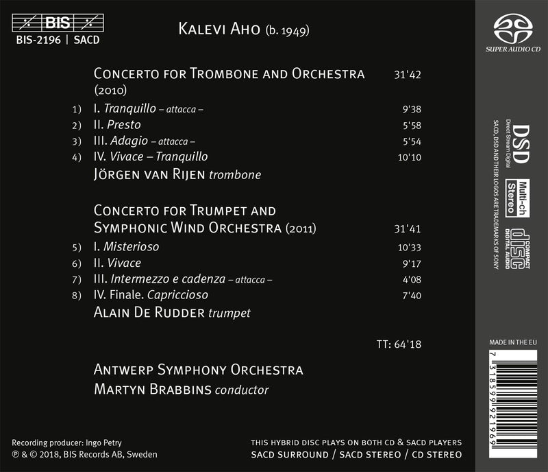 On SaleBISAho: Trombone & Trumpet Concertos / Rijen, Rudder, Brabbins, Antwerp Symphony