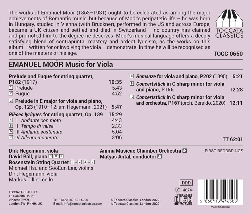 On SaleToccataMoór: Music for Viola / Hegemann, Báll, Rosenstein String Quartet, Anima Musicæ