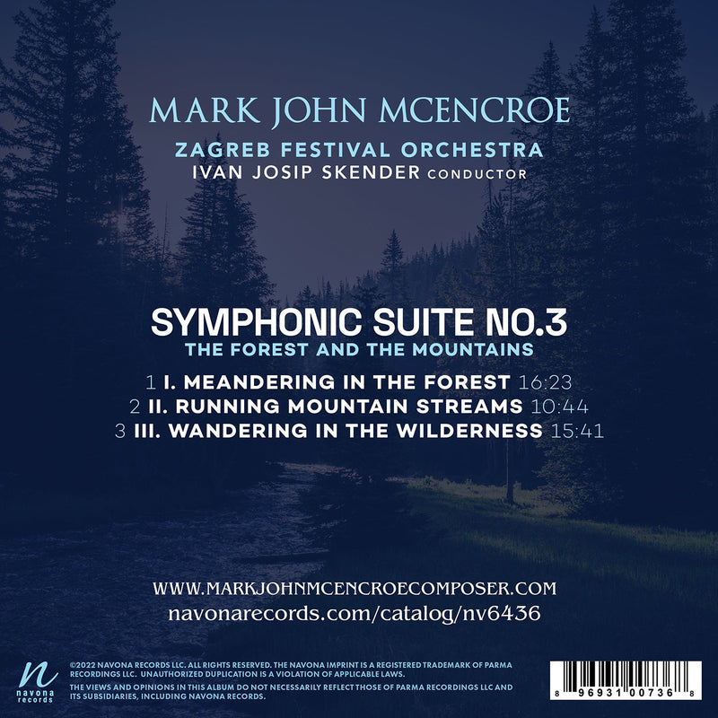 Australian composer Mark John McEncroe and Navona Records present SYMPHONIC SUITE NO. 3: THE FOREST AND THE MOUNTAINS featuring three orchestral movements...