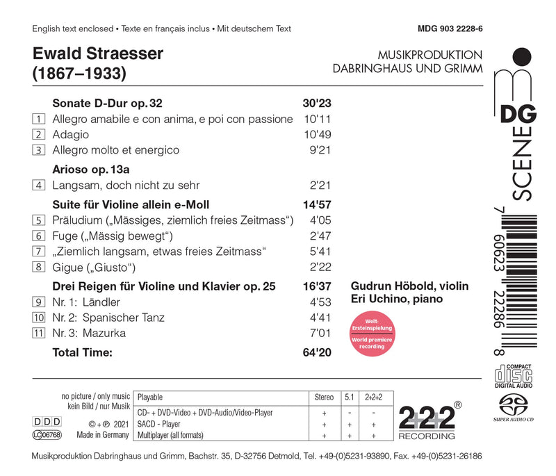 On SaleMDGStraesser: Works for Violin & Piano / Höbold, Uchino