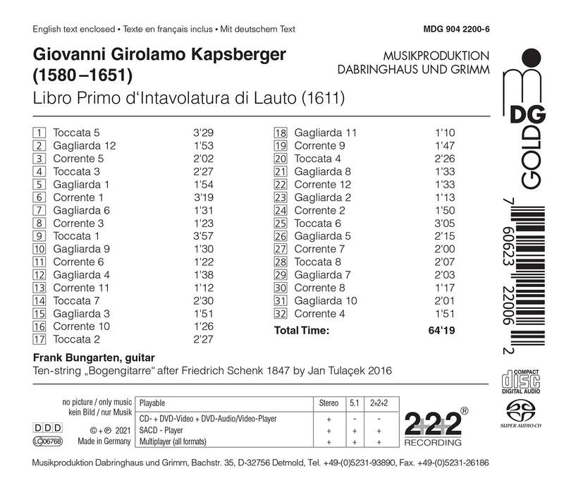 On SaleMDGKapsberger: Libro Primo / Bungarten