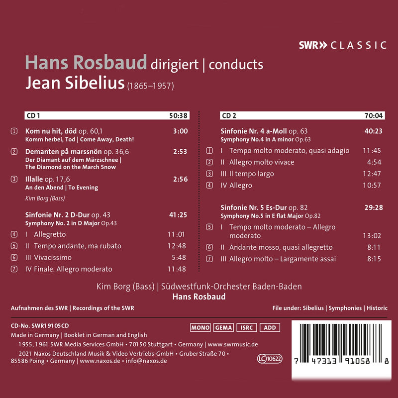 On SaleSWRSibelius: Symphonies Nos. 2, 4 & 5; 3 Lieder / Borg, Rosbaud, Southwest German RSO