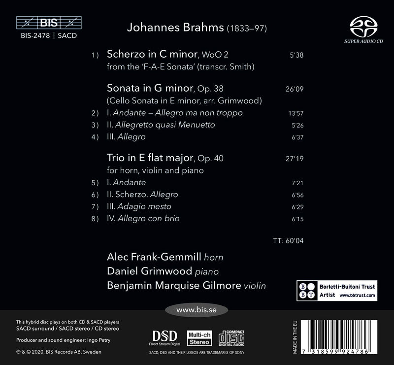 On SaleBISBrahms: Chamber Music with Horn / Frank-Gemmill, Grimwood
