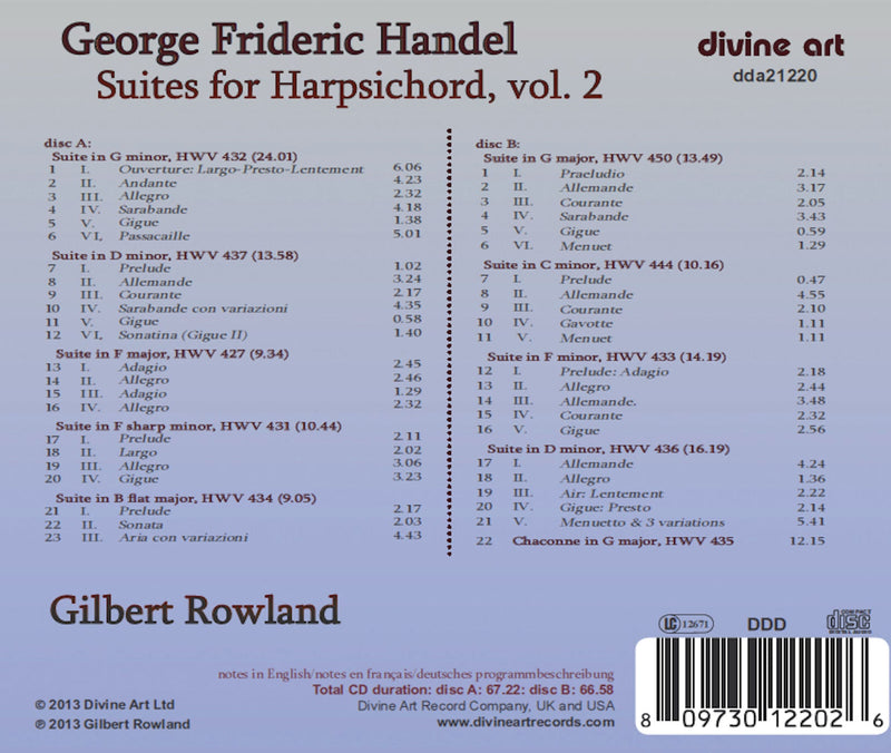 On SaleDivine ArtHandel: Suites For Harpsichord, Vol 2 / Gilbert Rowland