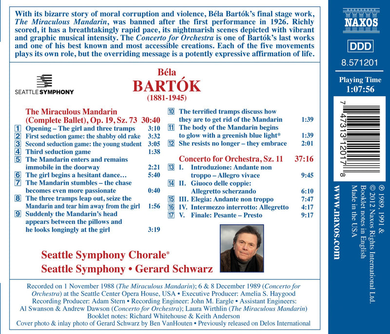 Seattle Symphony Orchestra & *Chorus/Gerard Schwarz. Delos DE 3083 [*The Miraculous Mandarin (complete ballet) and Kodály: Háry Janos Suite and Dances of...