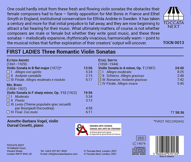 On SaleToccataFirst Ladies - Three Romantic Violin Sonatas / Vogel, Cesetti