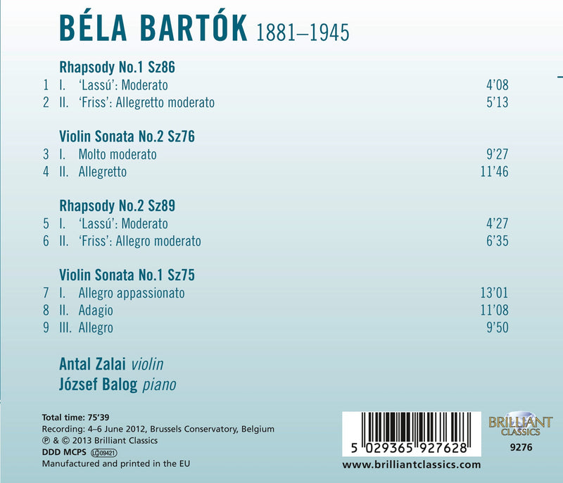 The disc features Antal Zalai, praised by Igor Oistrakh as 'an exceptional violinist who has a perfect technique, beautiful large tone, real...
