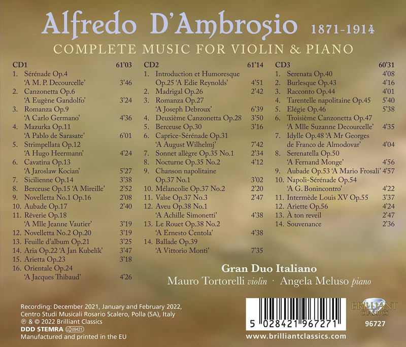 On SaleBrilliant ClassicsD'Ambrosio: Complete Music for Violin & Piano