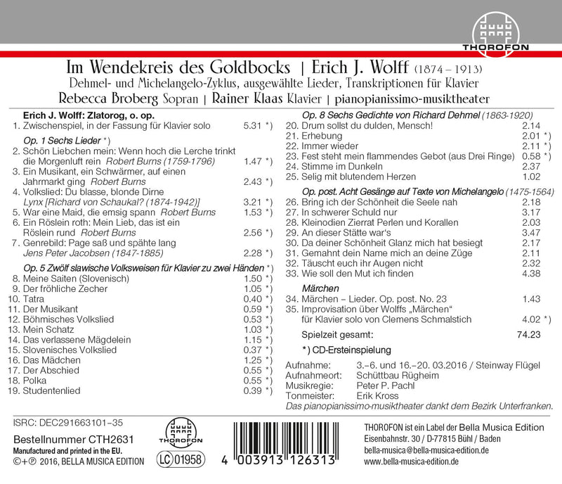On this new release with lieder by Erich Wolff, singer Rebecca Broberg and pianist Rianer Klaas have chosen songs to poems by...