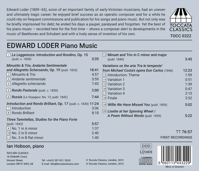 Born into a family of musicians, Edward Loder (1809-65) was known for his operas and conducting during his early to middle adulthood...