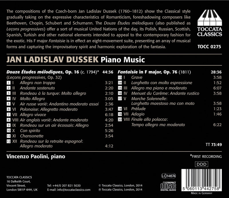 The Classical style compositions of the Czech-born Jan Ladislav Dussek (1760–1812) also foreshadow the coming of the Romantic age. + His Douze...