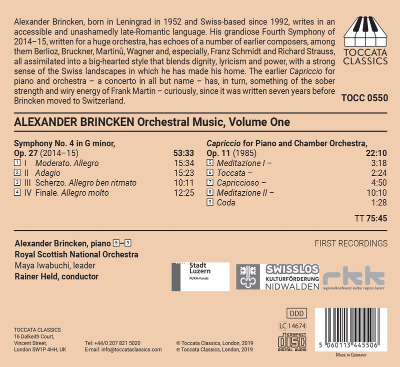 Alexander Brincken, born in Leningrad in 1952 and Swiss-based since 1992, writes in an accessible and unashamedly late-Romantic language. His grandiose Fourth...