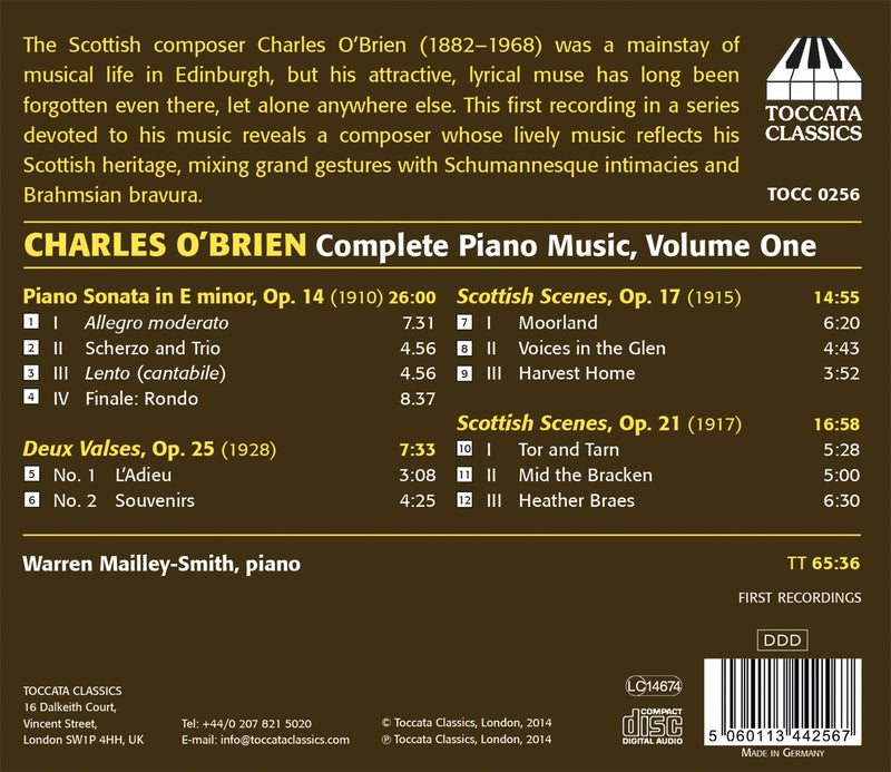 Charles O’Brien (1882–1968) is the archetypical composer for a Toccata Classics release: this CD rescues a forgotten Scottish Romantic from oblivion. O’Brien...