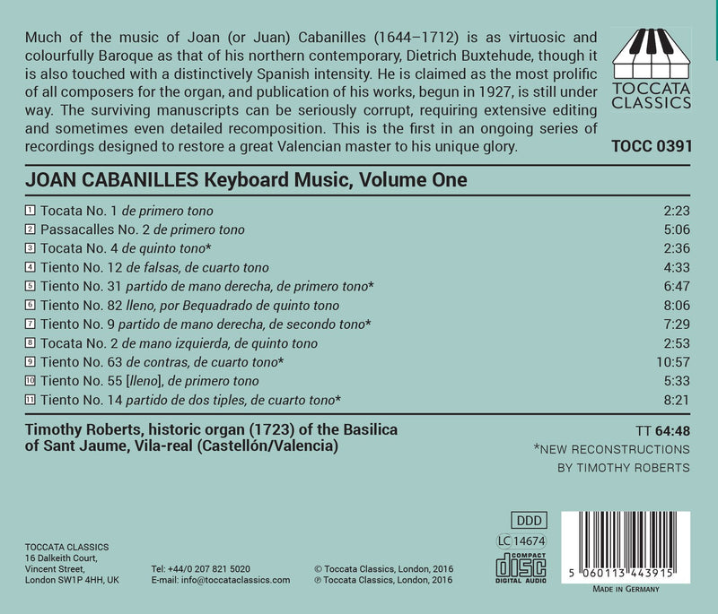 ToccataCabanilles: Keyboard Music, Vol. 1