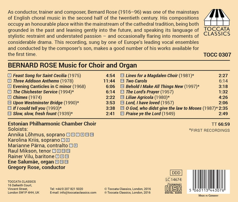 Making many of Bernard Rose's works available for the first time, his son Gregory Rose conducts the award-winning artists on this new...