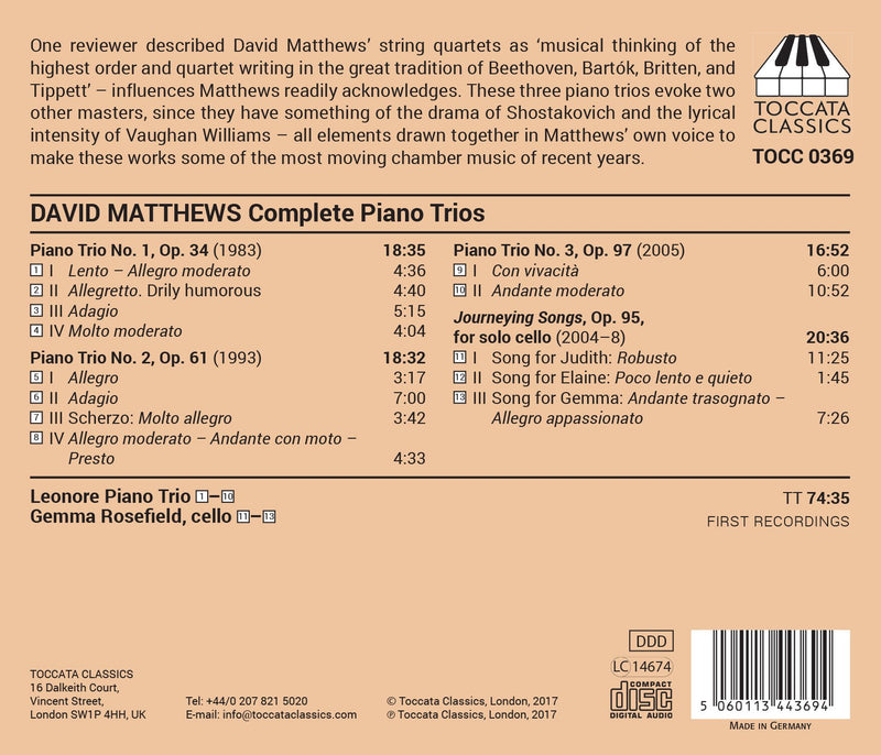 David Matthews has become one of the UK's leading composers, both of symphonic and chamber music. One US reviewer described his string...