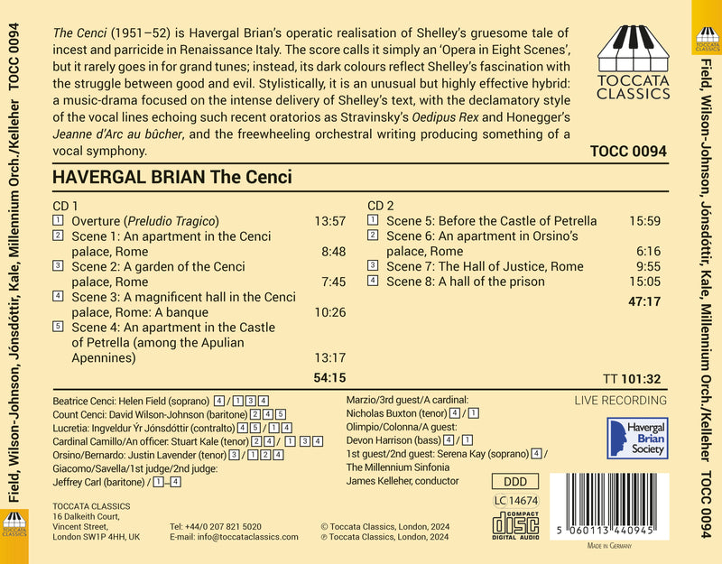 ToccataBrian: The Cenci / Kelleher, Millennium Sinfonia