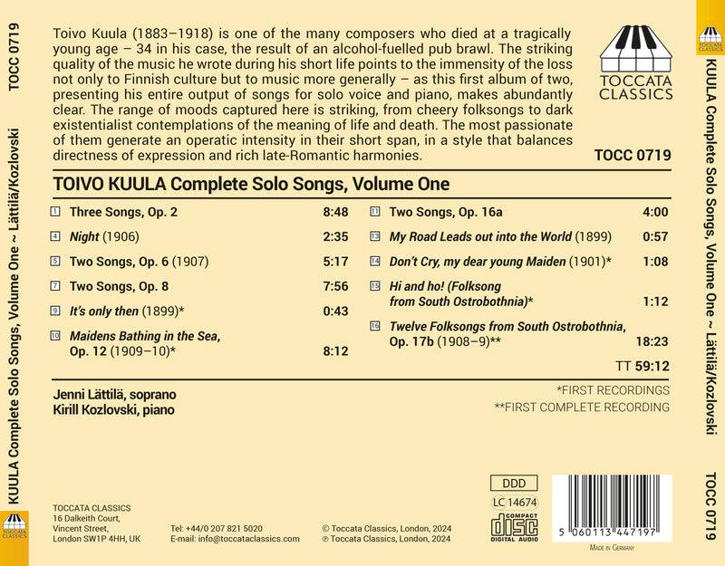 ToccataKuula: Complete Solo Songs, Vol. 1