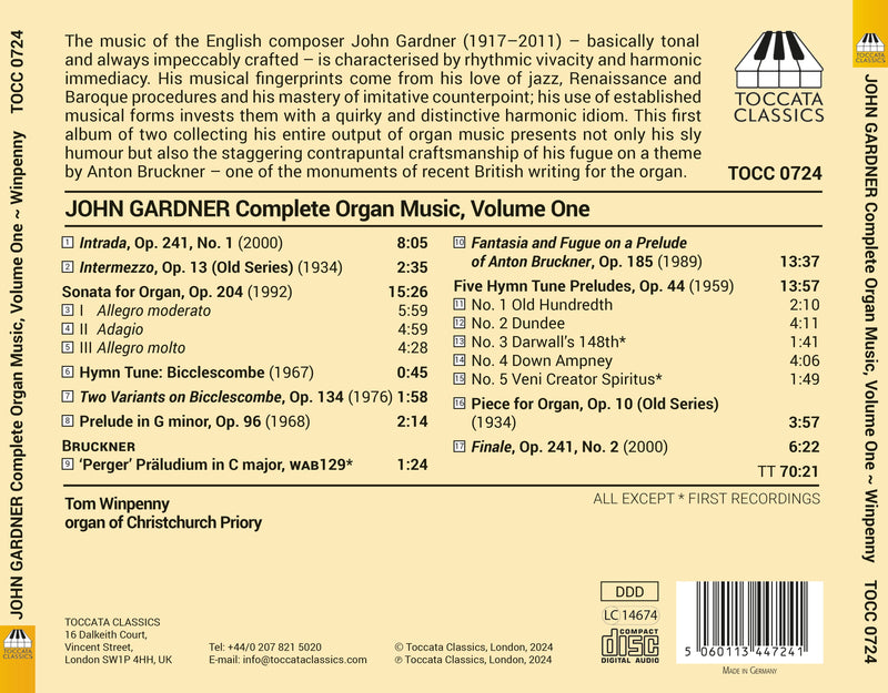 ToccataGardner: Complete Organ Music, Vol. 1 / Winpenny