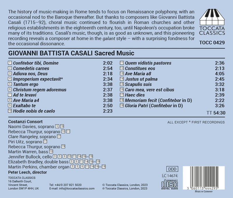 ToccataCasali: Sacred Music from Eighteenth-Century Rome / Costanzi Consort