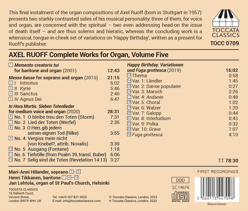 This final instalment of the organ compositions of Axel Ruoff (born in Stuttgart in 1957) presents two starkly contrasted sides of his...