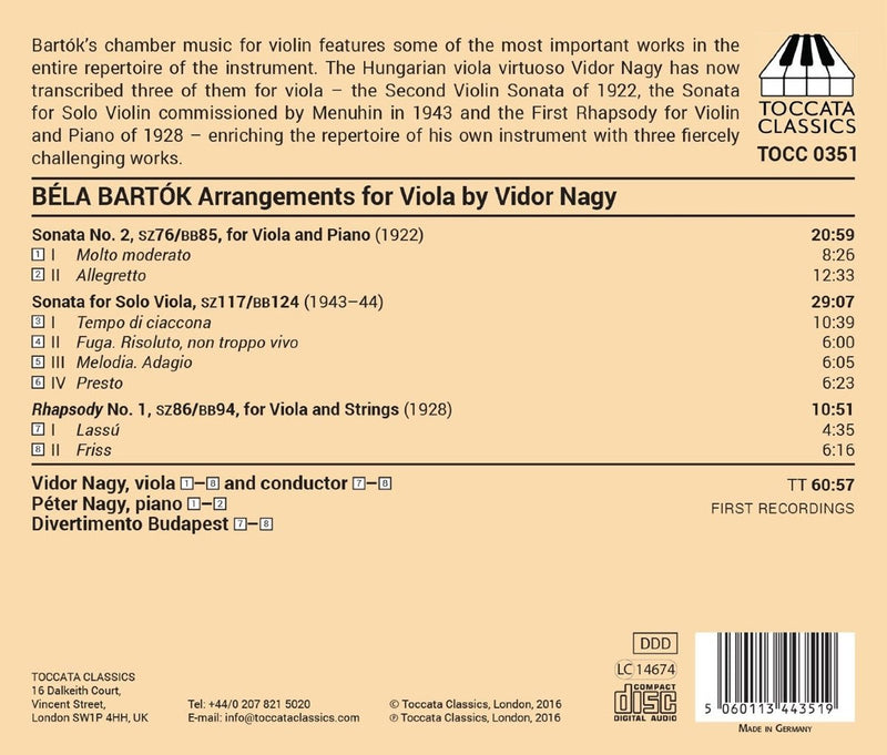 On SaleToccataBartók By Arrangement: Music For Viola / Nagy, Divertimento Budapest