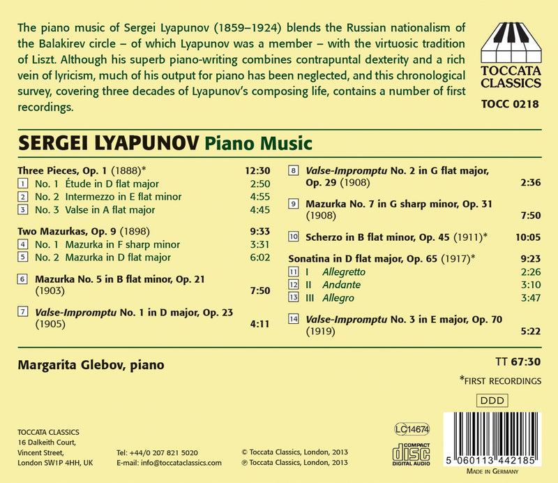 Although his superb piano-writing combines contrapuntal dexterity and a rich vein of lyricism, much of Sergei Lyapunov’s output for piano has been...