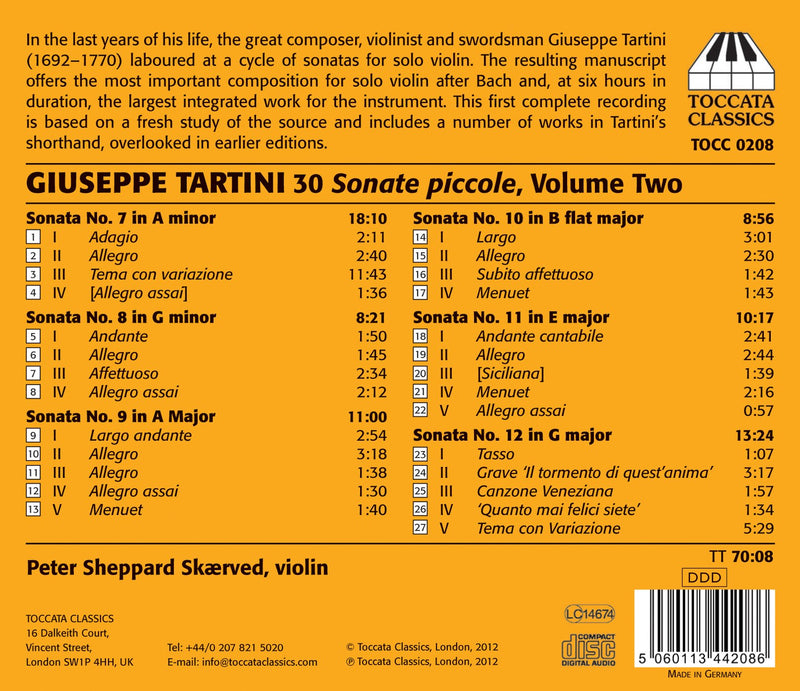 On SaleToccataTartini: 30 Sonate Piccole, Vol. 2, Sonatas Nos. 7-12