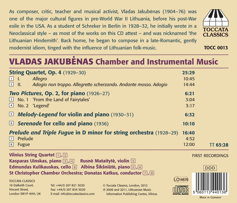Jakubenas (1904-76) was one of the major cultural figures in pre-WWII Lithuania: he was a prominent composer, critic, teacher and musical activist....