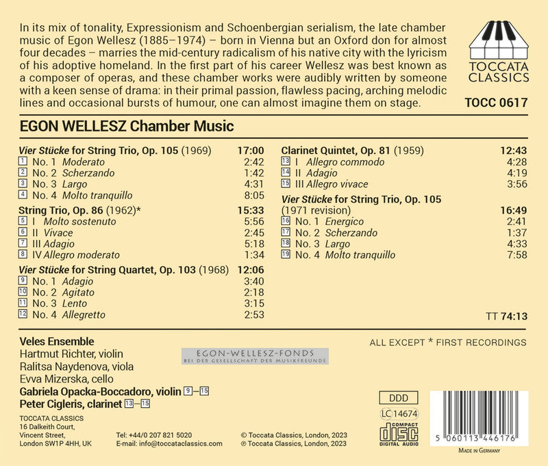 ToccataWellesz: Chamber Music / Opacka-Boccadoro, Cigleris, Veles Ensemble