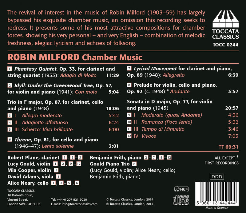The revival of interest in the music of Robin Milford (1903–59) has largely bypassed his exquisite chamber music, an omission this recording...