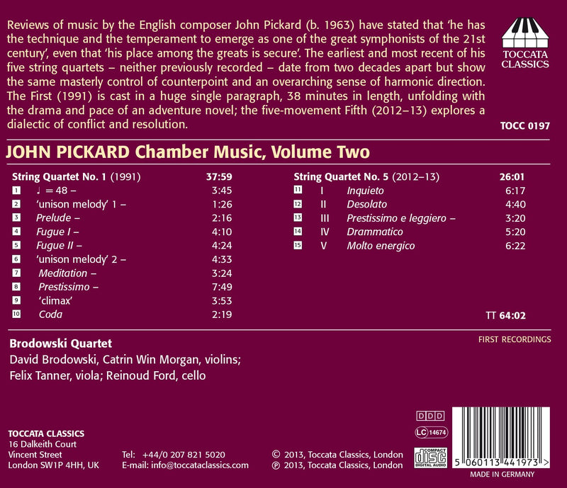 ToccataPickard: Chamber Music Vol 2 / Brodowski Quartet