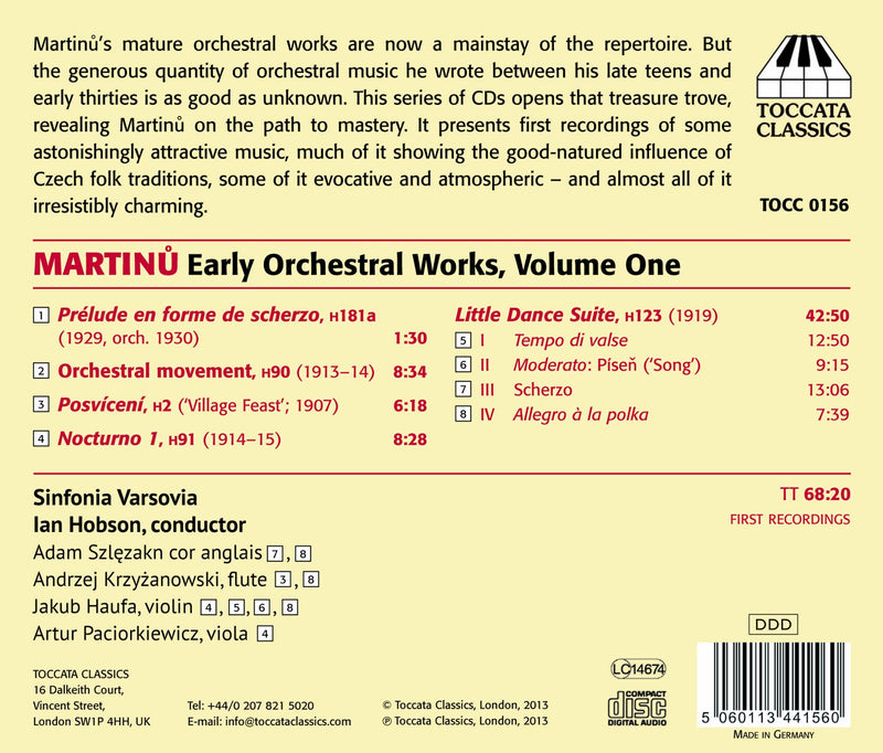 ToccataMartinu: Early Orchestral Works Vol 1 / Hobson