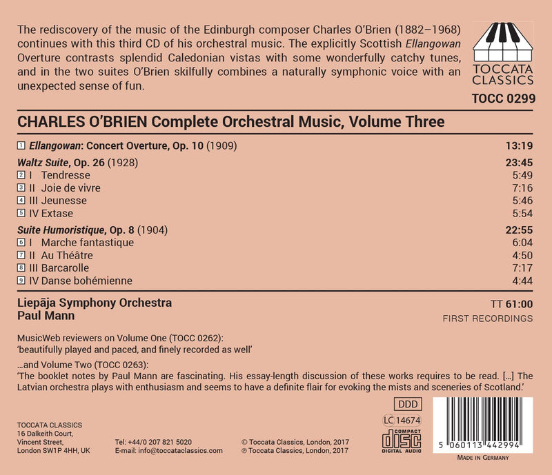 The rediscovery of the music of the Edinburgh composer Charles O'Brien (1882-1968) continues with this third and final album of his orchestral...