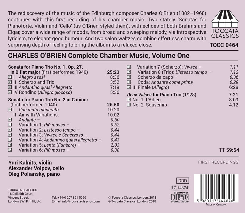 ToccataO'Brien: Complete Chamber Music, Vol. 1 / Kalnits, Volpov, Poliansky