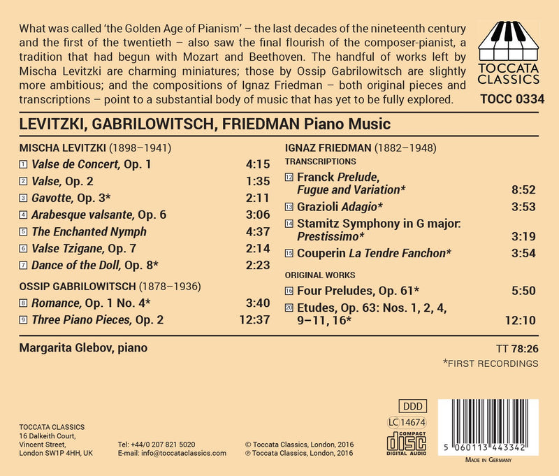 Of the three pianist-composers represented here as composers only Levitzki and Friedman have an extensive recorded legacy as executants. By comparison Gabrilowitsch,...