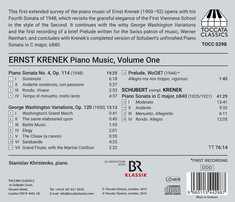 On SaleToccataKrenek, Vol. 1: George Washington Variations, Sonata No. 4; Schubert/Krenek: Reliquie