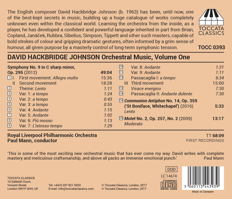 ToccataJohnson: Orchestral Music, Vol. 1 / Mann, Royal Liverpool Philharmonic