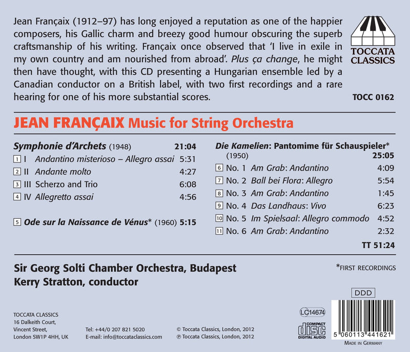 FRANÇAIX String Symphony. Ode sur “La Naissance de Vénus” de Botticelli. Die Kamelien: Pantomime • Kerry Stratton, cond; Sir Georg Solti C...