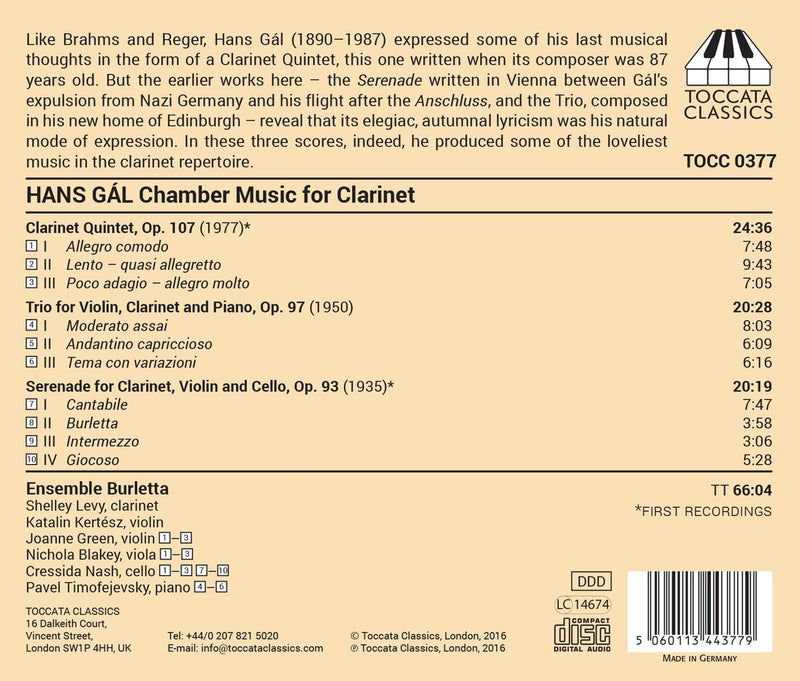 Like Brahms and Reger, Hans Gal expressed some of his last musical thoughts in the form of a Clarinet Quintet, this one...