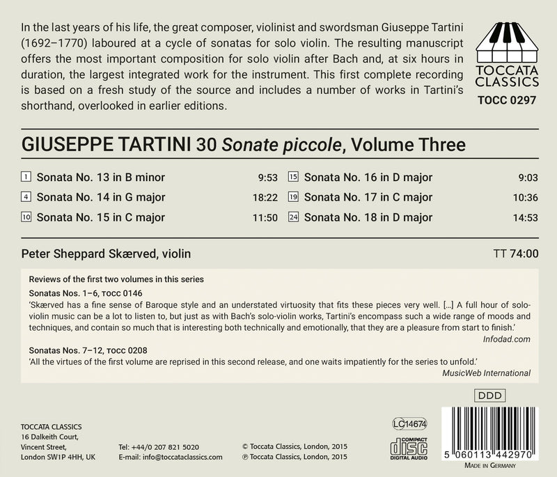 ToccataGiuseppe Tartini: 30 Sonate Piccole For Solo Violin, Vol. 3 - Sonatas Nos. 13-18