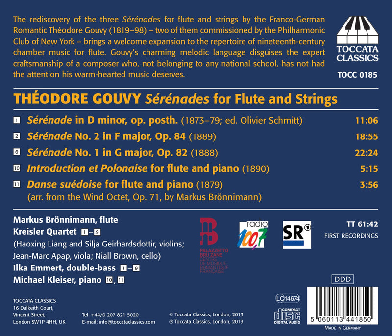 ToccataGouvy: Serenades For Flute And Strings / Bronnimann, Kleiser, Emmert